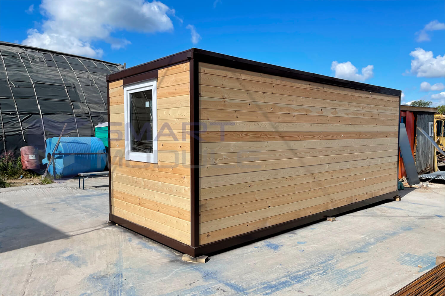 Деревянный, обрешетка из доски 2-4 сорт антисептированной Брус, размеры 100*40 мм, потолочные лаги – брус 100х40мм закладная по всей бытовки от пола 1800мм перегородка по схеме