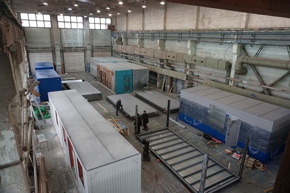 Производство сосредоточено на специальном заводе, состоящем из нескольких оборудованных помещений. Каждое из них позволяет одновременно собирать до 16 блок-контейнеров стандартных размеров.